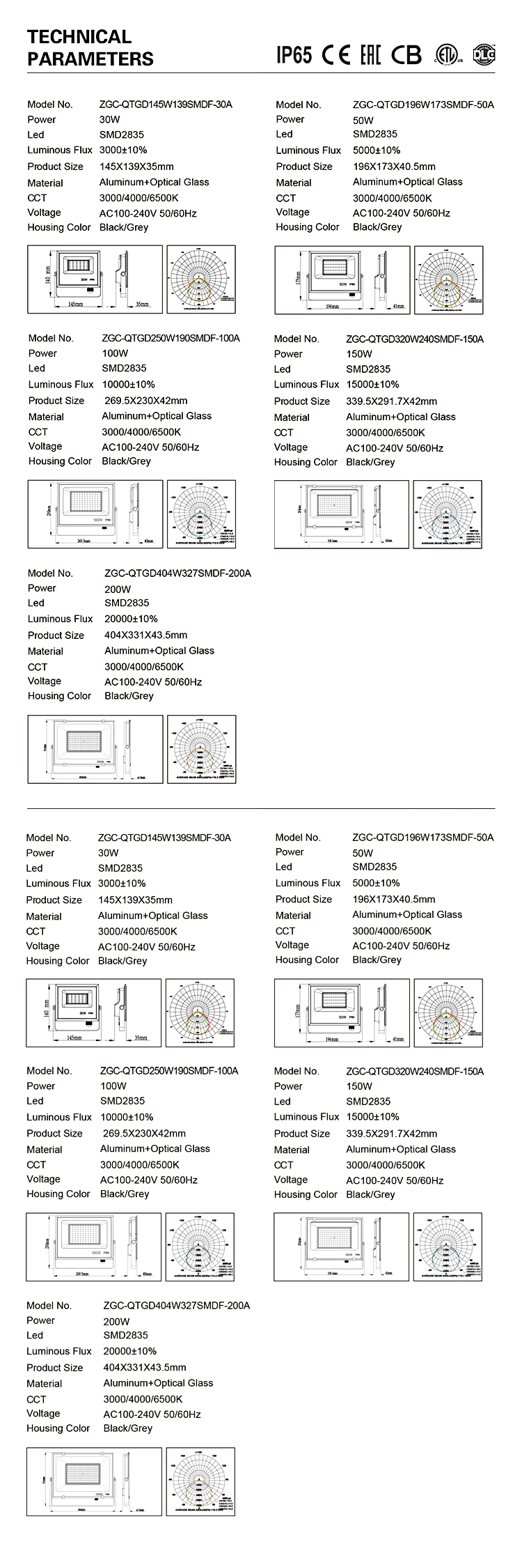 • Güç: Seçenek için 30W/50W/100W/150W/200W;
